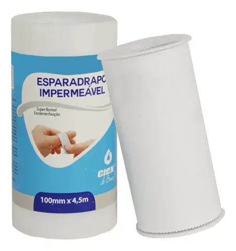 O esparadrapo impermeável é feito a base de látex, o que lhe dá resistência à água e excelente adesão.