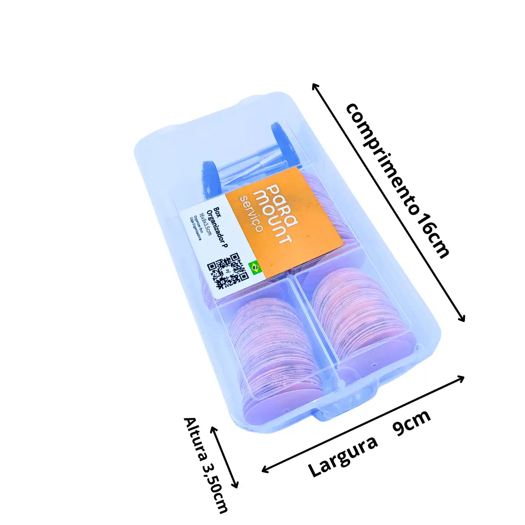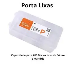 Apresentação no tamanho 16x9x3,5cm a solução ideal para organizar suas lixas de forma prática, segura e com estilo. Fabricada com plástico de alta qualidade e durabilidade, essa caixa oferece a capacidade perfeita para armazenar até 200 lixas, além de compartimentos para mandris, proporcionando organização completa para seus materiais de lixamento.